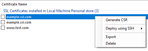 Self-signed certificates are displayed in SSL Manager’s main window, under the “Certificates” section. You can use the right-click context menu to interact with them.