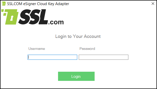 - A window will appear requiring the credentials to your SSL.com account where your signing certificate/s have been issued. Place them and then click the Next button.