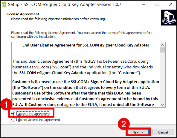 - Open the installer for eSigner CKA.