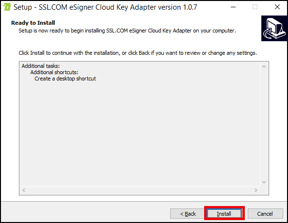 - Click the Install button to proceed with the installation of eSigner CKA.