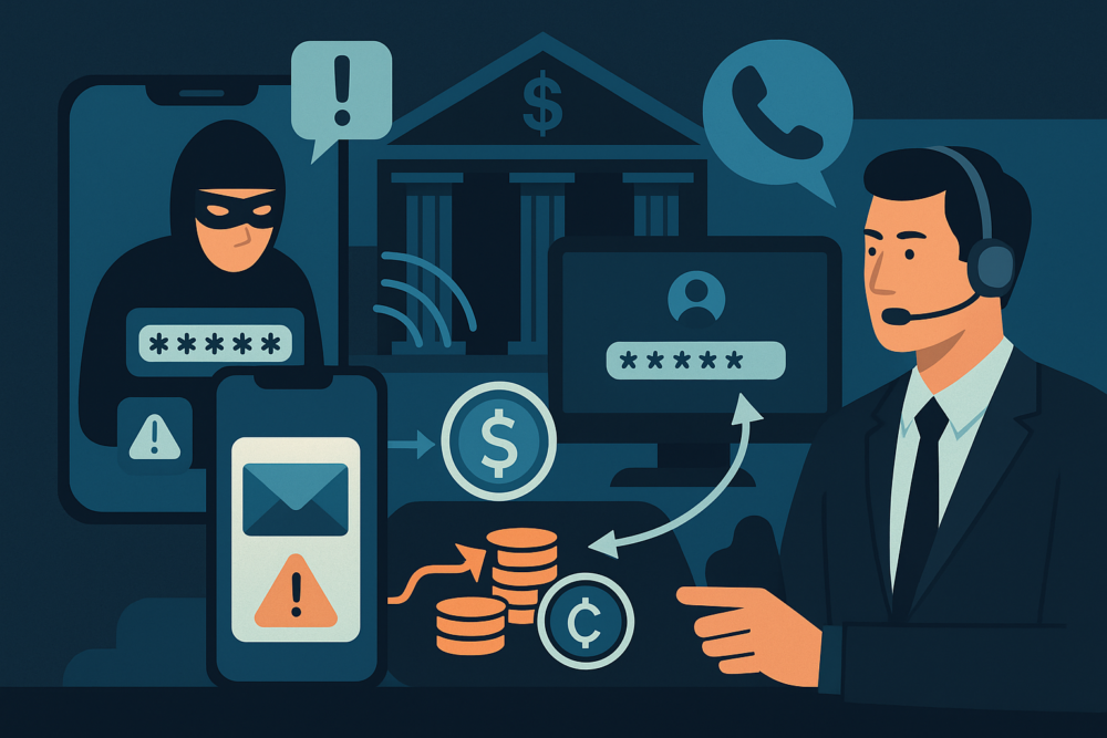 The FBI reports a surge in account takeover (ATO) schemes where criminals impersonate banks or customer support staff. Attackers use phishing, MFA hijacking, and spoofed websites to steal credentials, reset account passwords, and quickly transfer funds into crypto wallets.