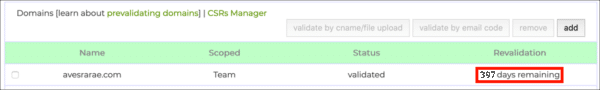 - After validation is complete, your domain should show 397 days remaining before revalidation is required.