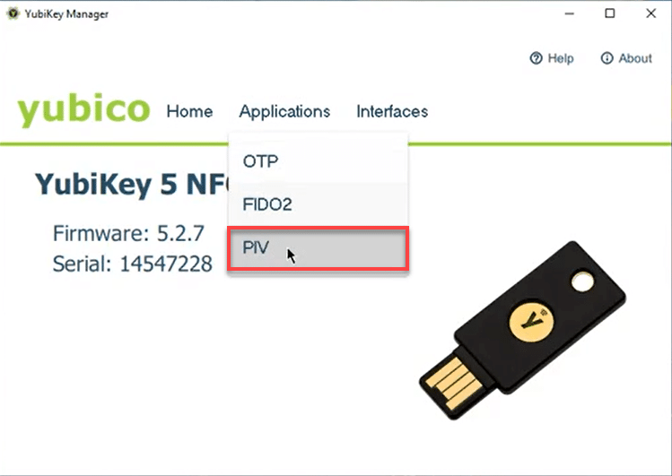 - Open the YubiKey Manager and insert the Token.