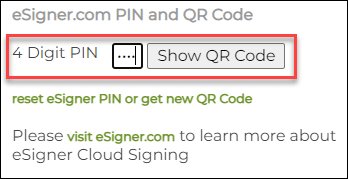 - Go to the eSigner.com PIN and QR Code section, type in your 4-digit eSigner PIN and click the Show QR code button