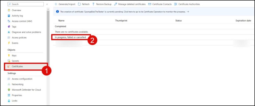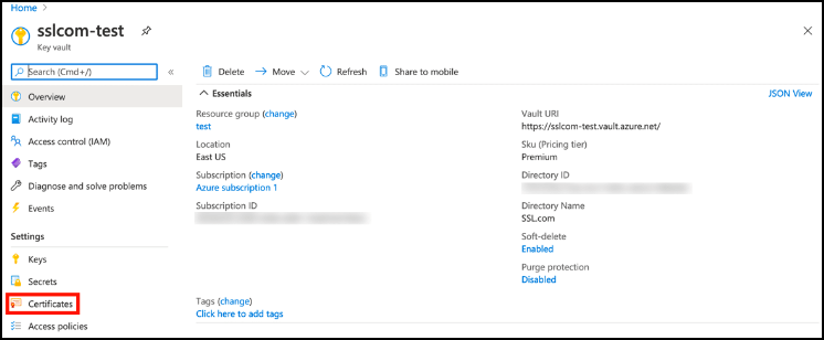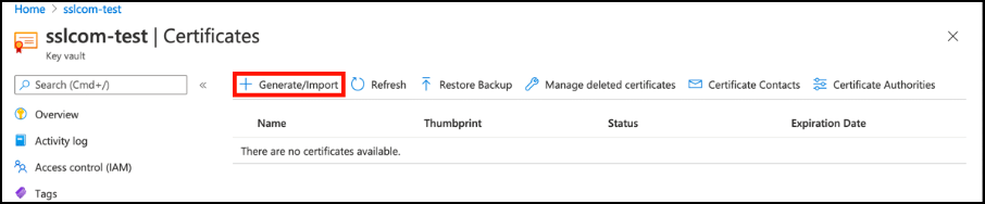 - If you already have an existing Azure Key Vault, please proceed to the other section: Generate a Certificate Signing Request in Azure Key Vault.