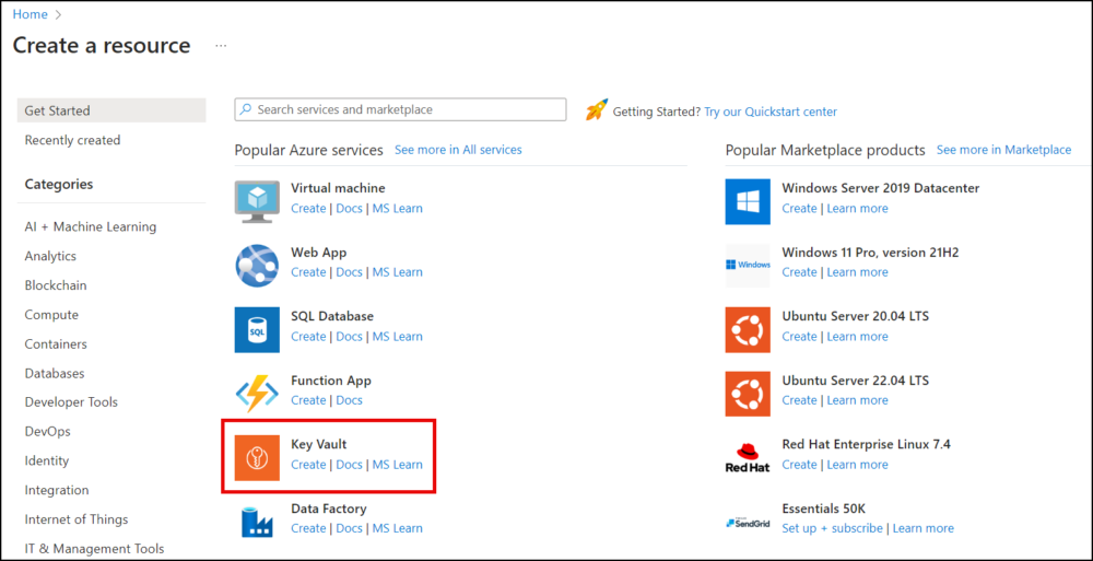 - For instructions on how to create an Azure Key Vault, please refer to the next section: Create an Azure Key Vault.