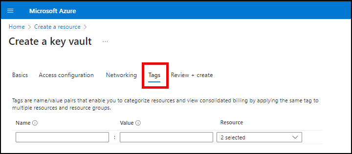 - Continue to Review + create. Review your settings, then click the Create button to create your new Key Vault.