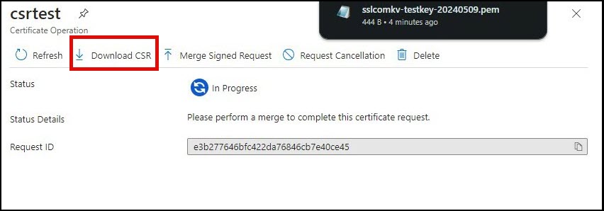 To utilize Azure Key Vault (Premium Tier), users are required to create a Certificate Signing Request (CSR), which acts as an official submission for SSL.com to issue a code signing certificate. Before a CSR is used to issue a certificate, a Certificate Authority like SSL.com must verify that the private key will be the basis for the encryption used in the request and was created and safely stored on a certified device meeting FIPS 140-2 Level 2 (or above) standards, with protection against key export. This verification is performed through an attestation process, which can be conducted either by a qualified security officer designated by the registrant or through an attestation service provided by SSL.com.