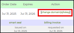 Navigate to Orders > change domain(s)/rekey in the SSL.com portal.