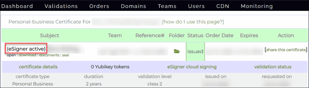 You will know that your order still has an active eSigner subscription if the words eSigner active can be found before the subject of the certificate.