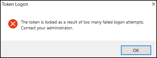 When you have exceeded the maximum number of logon attempts allowed, the following message will appear: The token is locked as a result of too many failed logon attempts. Contact your administrator.