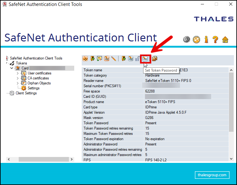 - Next, click the icon with your device’s name next to it and then, the button Set Token Password.