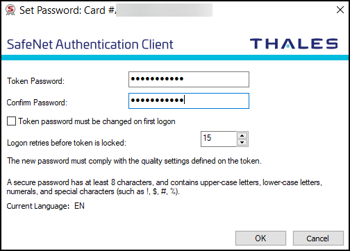 - Finally, enter the new password in the next two fields Token Password and Confirm Password and click the OK button.