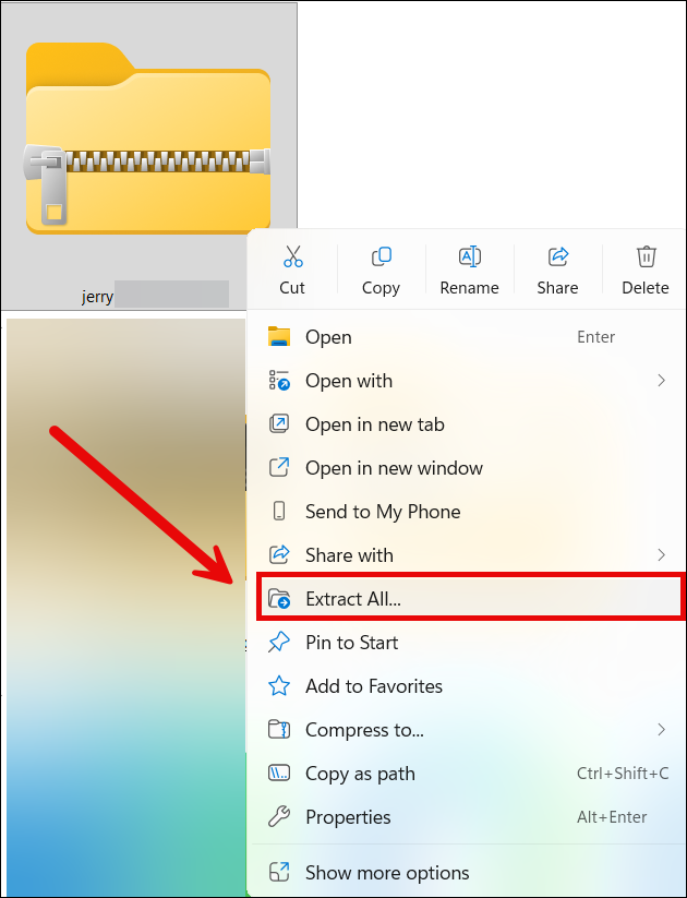- Right click the downloaded zip file. Click Extract All…