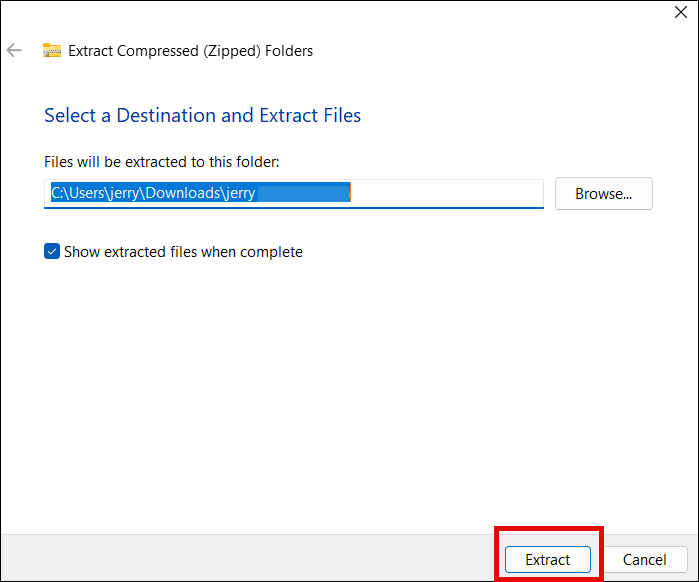 - Choose a location where you want the files to be extracted and then click the Extract button.