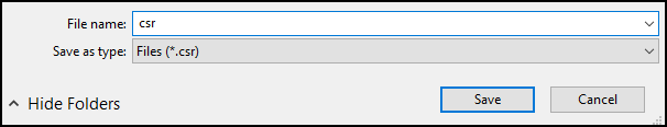 - Save the CSR certificate in a folder.