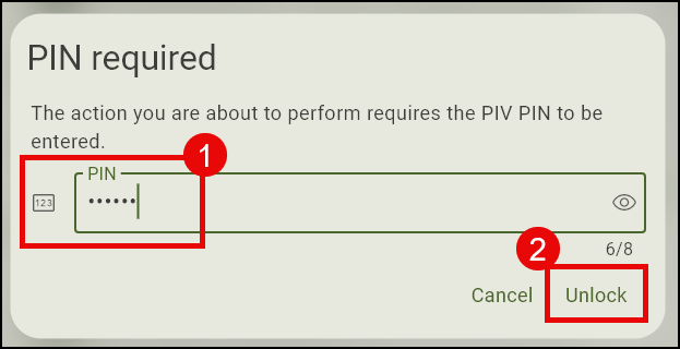 - Enter your YubiKey PIN.