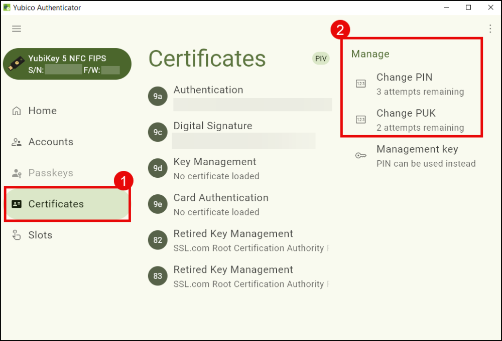 a. For customers with a blank YubiKey, click the manage link, under attestation.