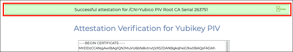 - If everything has gone correctly, a green alert will appear at the top of the screen, indicating a successful attestation.