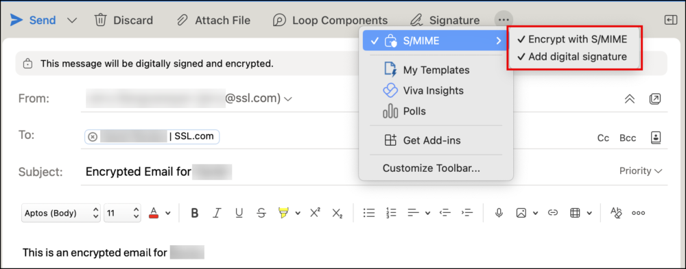 Send a Secure Email using a S/MIME Certificate in the new Outlook for Mac